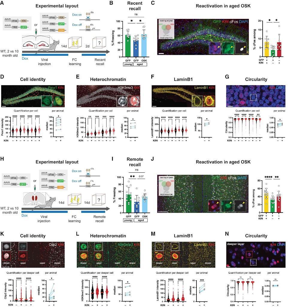 结果显示,在老年小鼠中,仅需短暂激活海马体内的印痕神经元OSK表达,其记忆表现便恢复至年轻小鼠水平;而靶向前额叶皮层时,几周前形成的遥远记忆也得以重现。不仅如此,这些被重编程的神经元展现出“返老还童”的迹象,不仅保持原有身份特征,分子层面也回归年轻状态,甚至逆转了与衰老相关的核结构异常。