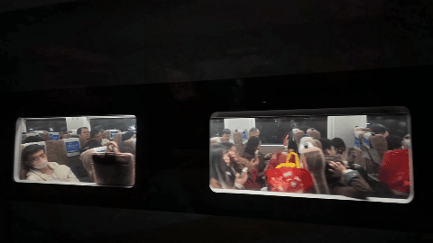 在夜色中,车窗就像一格格流动的时光胶卷,记录着一个个奔赴归途的身影。