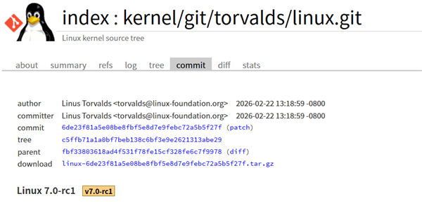 当前,Linux 7.0-rc1已发布,源码可从git.kernel.org获取。