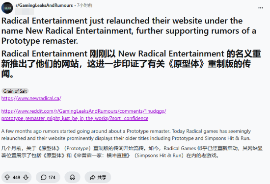 但是需要强调的是,New Radical Games是一家新成立的独立工作室,并不属于动视。和原本开发《虐杀原形》的Radical Entertainment并无任何官方层面的继承关系,仅有精神和血缘意义上的传承,包括Radical Entertainment创始人在内的部分员工来自原Radical Entertainment。