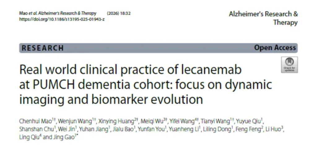近日,北京协和医院多学科团队在国际权威期刊《阿尔茨海默病研究与治疗》(Alzheimer’s Research & Therapy)发表了仑卡奈单抗治疗早期阿尔茨海默病(AD)的中国真实世界研究结果,早期AD患者的疾病进展速度有望放缓。本研究由神经科主任医师高晶团队、放射科主任冯逢团队、核医学科主任霍力团队、临床检验诊断学系副主任邱玲团队与转化医学国家重大科技基础设施(北京协和)临床疗效验证平台合作完成。