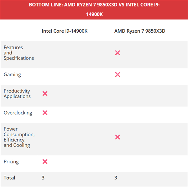 可以说,双方对比是三胜三负,打了个平手,但对于大多数人来说,9850X3D显然是更好的选择,除了游戏、能效好得多,其实还有两个隐藏优势:
