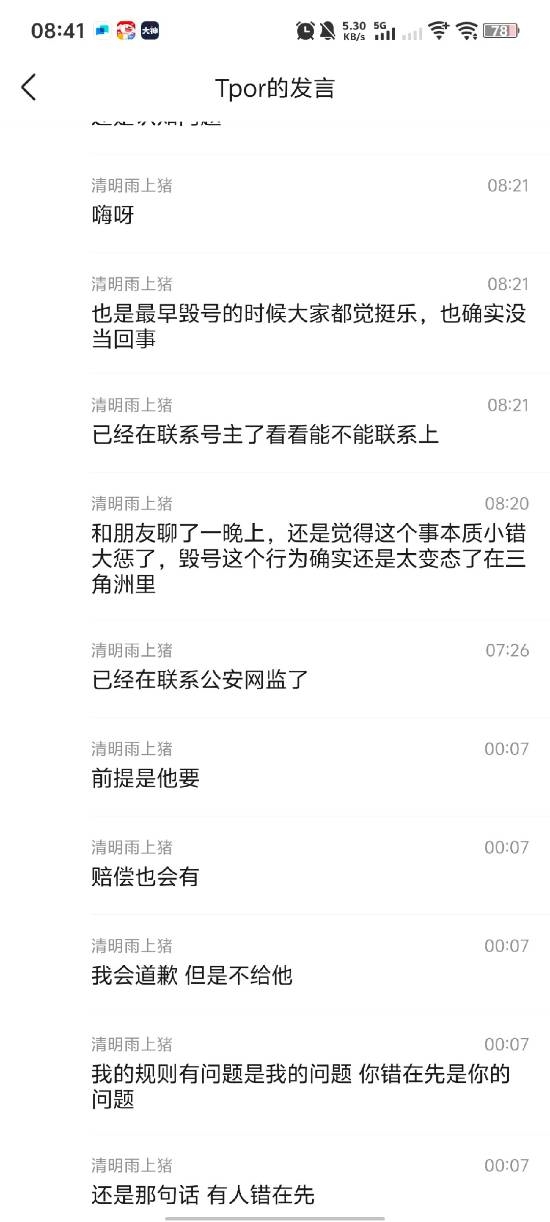然而,在这份致歉声明发布的背后,多名玩家在评论中晒出了该主播此前在社交群中的发言截图,其真实态度引发了巨大的舆论争议。根据曝光的聊天记录,清雨曾表示:“没招,背刺不背刺的我没违规没做错事我没有任何错在先,他被毁号至少他自己没发现舰长过期和乱扫号这是他的问题。性质根本不是一样的,还是那句话有人错在先,我的规则有问题是我的问题你错在先是你的问题,我会道歉但是不给他,赔偿也会有,前提是他要。”