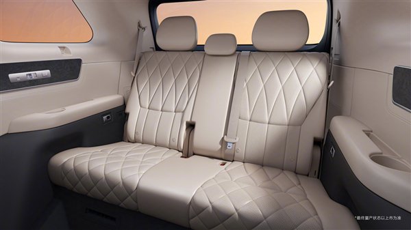 第二排配备了更加舒适的独立座椅,,菱形的缝线提升了高级感,拥有一体式腿托,支持一键躺平功能,第三排座椅也可以电动调节,并拥有座椅加热功能,而且明确有7座版本。