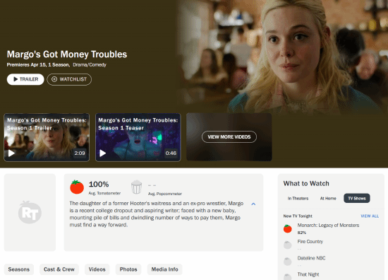 由艾丽·范宁(Elle Fanning)领衔主演的电视剧集 《玛戈没钱了》(Margo’s Got Money Troubles) 第一季媒体评价于今日正式开分。该剧在知名影评网站 烂番茄(Rotten Tomatoes) 上的新鲜度达到了 100%,口碑呈现出一边倒的赞誉。