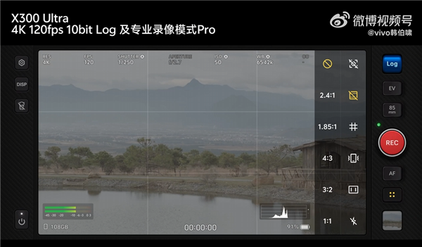 X300 Ultra界面交互信息显示更直观,提供各种丰富的参数调节和专业Log控制,Log录制时就能加载3D LUT预览,创作过程中就能实时校验色调,拥有沉浸式专业创作体验。