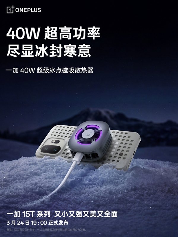 快科技3月21日消息,一加正式公布40W超级冰点磁吸散热器,定位为即将发布的一加15T专属散热搭档。