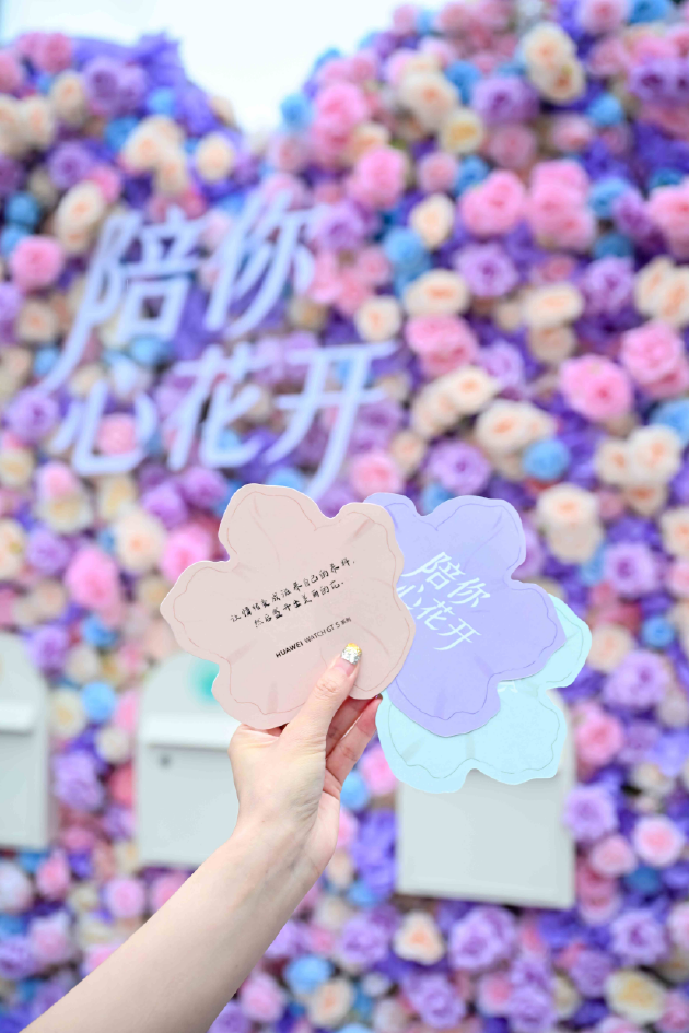 3月5日,成都万象城华为智能生活馆迎来了一场别开生面的“陪你心花开”快闪活动。以“心花”寓意女性内在的情绪表达,这场活动生动诠释了华为智能穿戴如何助力女性从内而外绽放光芒。活动设置了“心花寻踪”、“心花礼遇”和“共绘心花”几大环节:用户在店内寻找产品中的花元素,领取高能量“心花卡”,与“护花使者”沉浸式互动,最后在巨型花型地垫上共绘心花。这不仅为女性用户带来了节日的专属仪式感,更传递了一个温暖的信号——鼓励女性关注自身情绪,勇敢绽放心中的花朵。