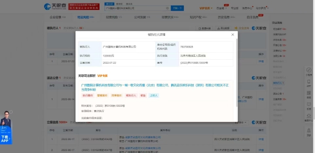 新浪科技讯 7月27日上午消息,天眼查App显示,近日,广州酷狗计算机科技有限公司新增一则被执行人信息,执行标的12万元,执行法院为北京市海淀区人民法院,涉及案件为该公司与一城一歌文化传播(北京)有限公司等不正当竞争纠纷。