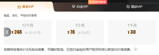 2021年年底,爱奇艺调整了会员服务价格,提价后,黄金VIP普通包月会员由25元提至30元,涨幅20%;连续包月由19元提至22元,涨幅16%;普通季卡会员由68元提至78元,涨幅15%;连续包季58元提至63元,涨幅9%;普通和连续年卡会员价格保持不变,分别为248元与218元。