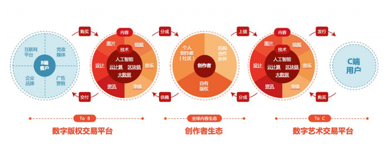 视觉中国的核心商业模式主要是服务内容创作者,通过整合海量优质全面的图片、视频、音乐等数字版权内容,通过“优质内容+技术创新”建设网络服务平台,一方面为B端客户提供数字版权交易服务,另一方面为C端用户提供数字艺术品交易服务。