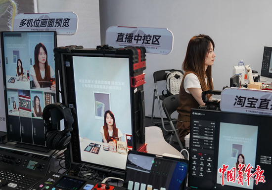 9月5日,2022服贸会国家会议中心展区,多块屏幕现场展示着多机位预览、中控系统、直播平台后台等电商高清4k直播的解决方案,为电商直播提供更加便捷高效的服务。