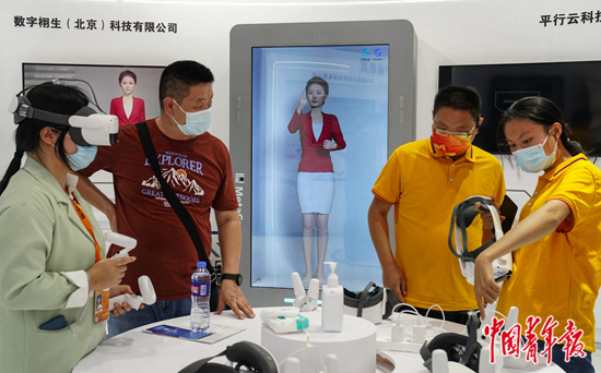 9月1日,2022年服贸会首钢园展区文旅服务展馆北京海淀区展位上陈列着“数字人”、VR一体机教学系统等元宇宙相关技术应用产品。