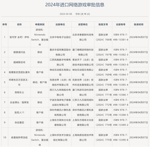 4月8日,国家新闻出版署发布4月进口网络游戏审批信息,共有14款游戏获批,腾讯、完美世界、网易以及吉比特等上市公司均有斩获。有机构认为,近期版号发放周期和数量趋于稳定,优质供给带来行业高增,产品周期和行业景气度有望持续提升,随之带来玩家消费意愿的进一步释放。