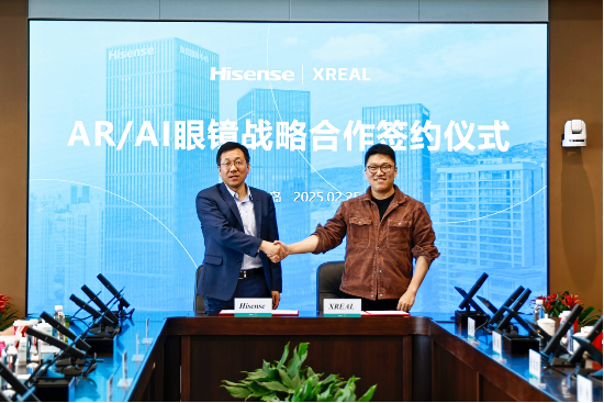 2025年2月25日,显示产业龙头海信视像(600060.SH)与AR领军企业XREAL宣布达成深度战略合作,双方将在AR/AI眼镜领域开展技术协同、生态共建与全球市场拓展。此次合作标志着显示技术与空间计算的跨界融合进入新阶段,有望加速消费级AR设备渗透率提升,重构全球XR产业竞争格局。