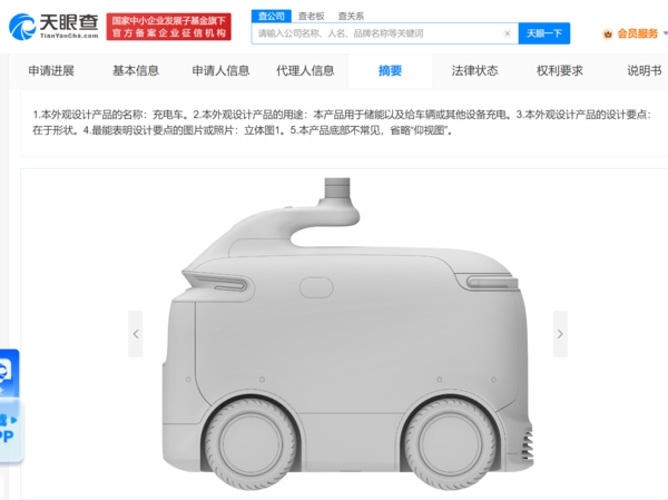 华为充电车外观专利曝光:可给车辆或其他设备充电