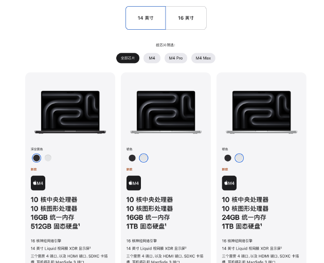 苹果发布MacBook Pro,两个尺寸三种M4系列芯片可选,定价12999元起
