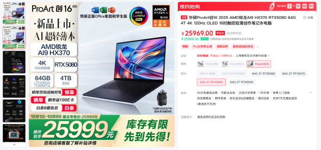 华硕ProArt创16 2025(RTX 5080):https://item.jd.com/100278101130.html