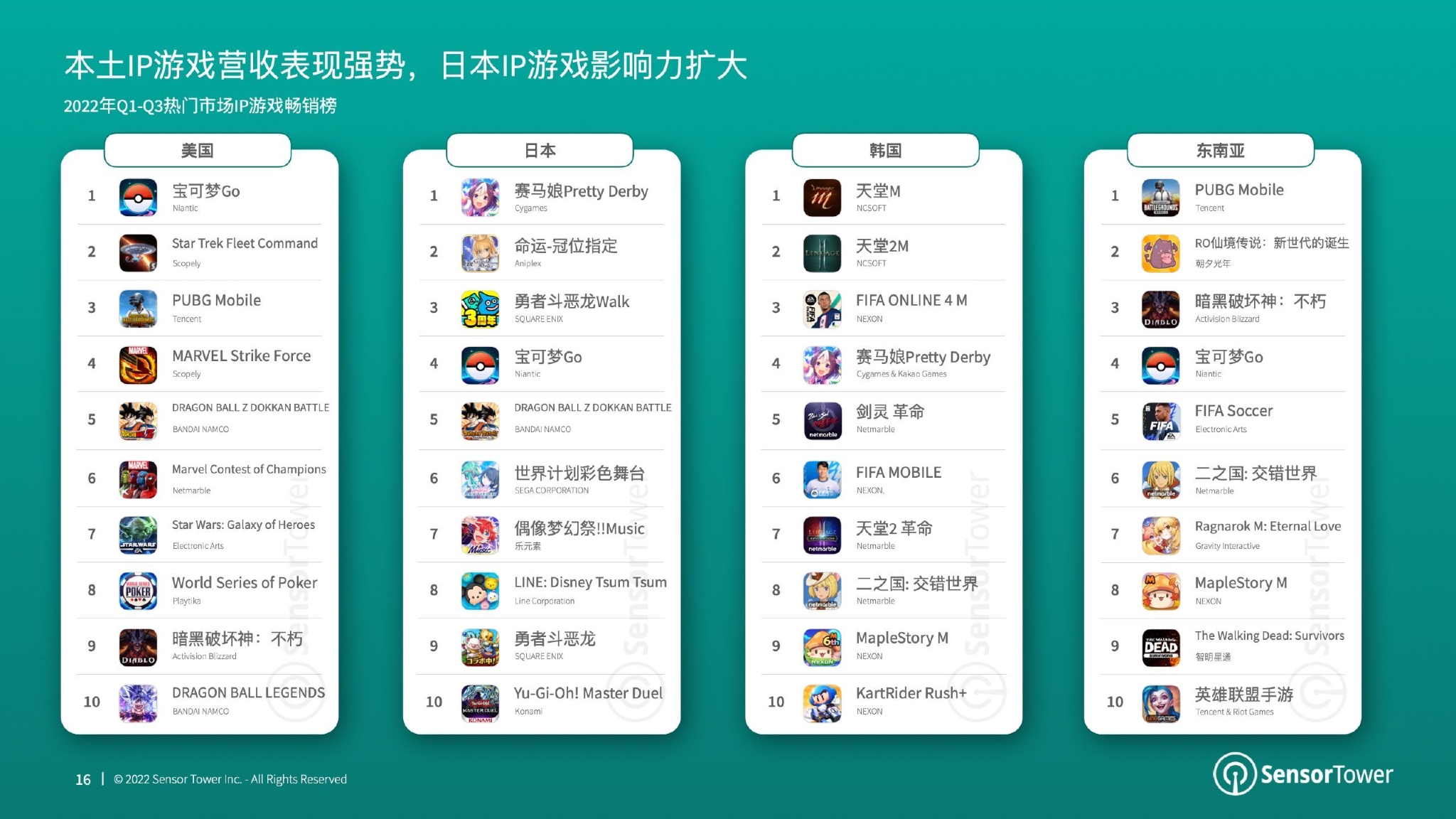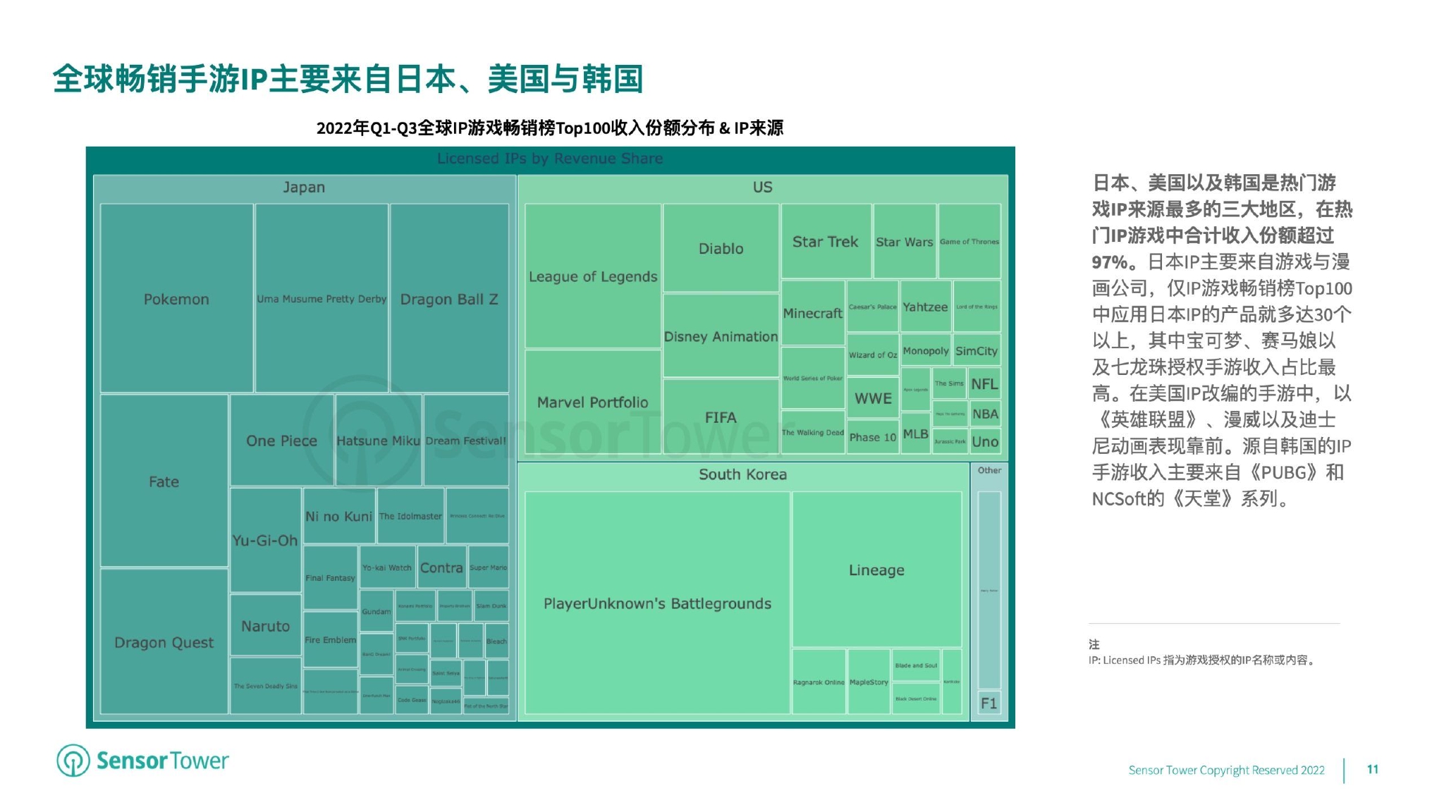 随着多媒体时代的演进以及移动设备的不断升级,手游市场竞争越发激烈,如何使游戏快速吸引玩家,并延长其在游戏内的停留时间已成为游戏发行商的重要目标。手游IP化无疑是当下流行的一种提高游戏知名度与吸引潜在用户的有效方式。《2022年全球IP游戏市场洞察》报告将针对当前移动游戏市场IP化发展与动向进行介绍与分析。