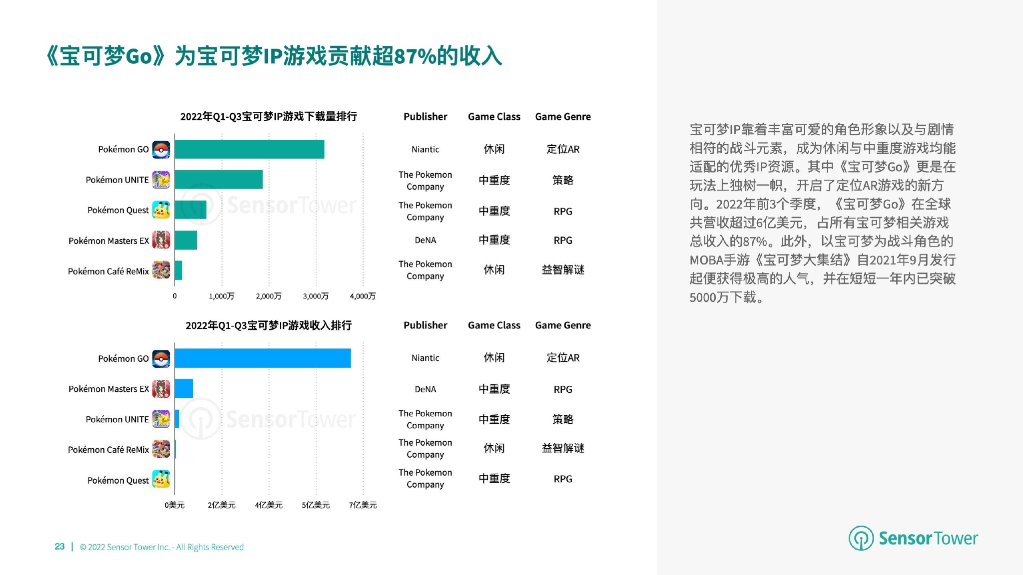2022年前3个季度,全球IP游戏下载量达16亿,其中iOS与Google Play下载量占比分别为28.3%、71.7%。