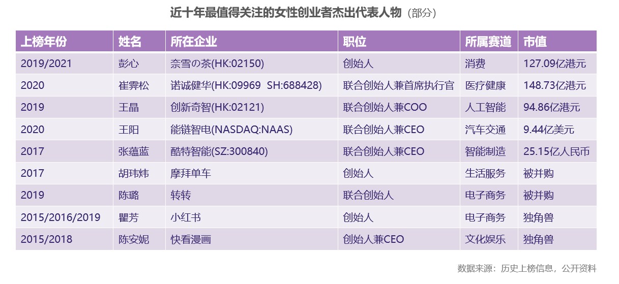 以下为本次女性创业者上榜完整名单: