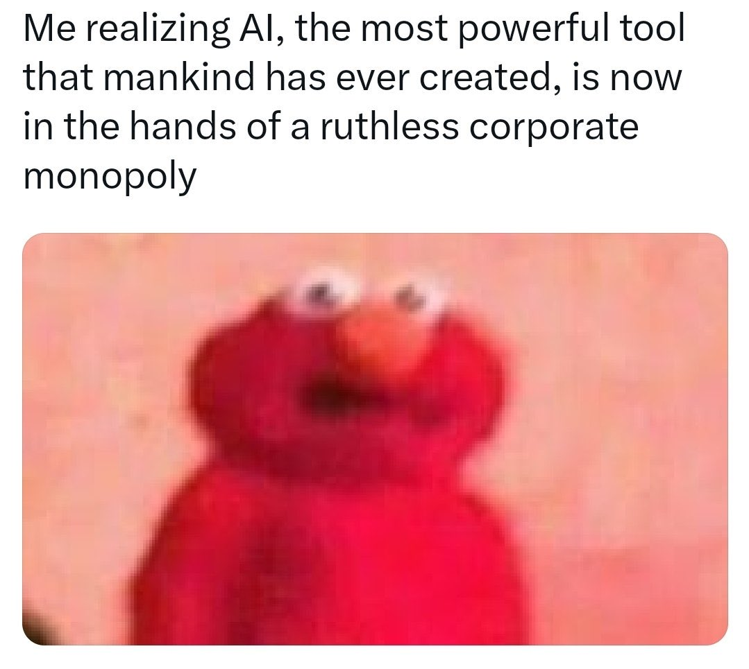 OpenAI 拒绝发表评论,Musk 也没有回应评论请求,但在 3 月 25 日,他发了一条推文:「我相信一切都会好起来。I'm sure it will be fine.」,并配上了一个 Elmo 的表情包和一句话:「我意识到 AI,人类创造的最强大的工具,现在落入了一个无情的企业垄断集团的手中。」