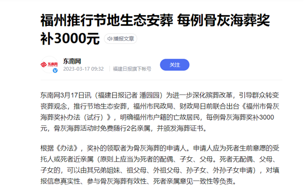 甚至有很多地区,为了转变大众的传统殡葬观念,还会给海葬大额补贴。