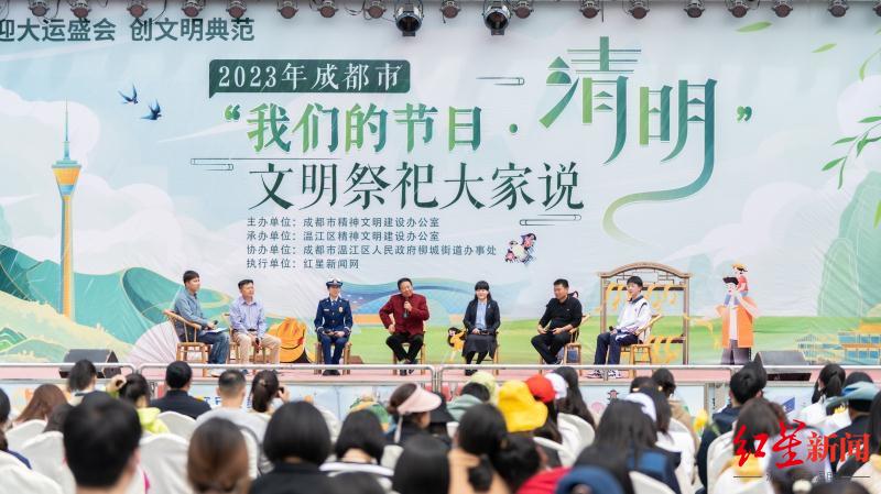 文明祭祀大家说共话节日习俗,倡导绿色清明赏清明茶艺、听民俗专家趣说节日记忆、与心理专家一起追忆逝者疗愈自己……4月4日,由成都市文明办主办、温江区文明办承办的“2023年成都市‘我们的节日·清明’文明祭祀大家说”活动举行,100余名青少年、网格员、志愿者、市民代表齐聚文庙广场,以“台上大家畅谈,台下趣味体验”的形式共同抚今追昔、慎终追远,共话绿色清明、文明清明。