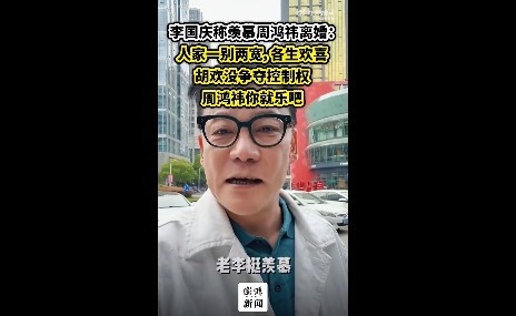 【CNMO新闻】日前,三六零公司宣布周鸿祎与胡欢已解除婚姻关系的消息引发热议。CNMO了解到,近日,李国庆在社交媒体发视频称,人家终于离了,他挺羡慕的。并表示:胡欢没争夺集团控制权,周鸿祎你就乐吧。财产多分点没事,一别两宽各生欢喜,不像自己烦死了,希望他们彼此都幸福。李国庆还不同意网上有人猜测周鸿祎借离婚变现套现的说法,他认为周鸿祎和胡欢不到万不得已是不会离婚的。