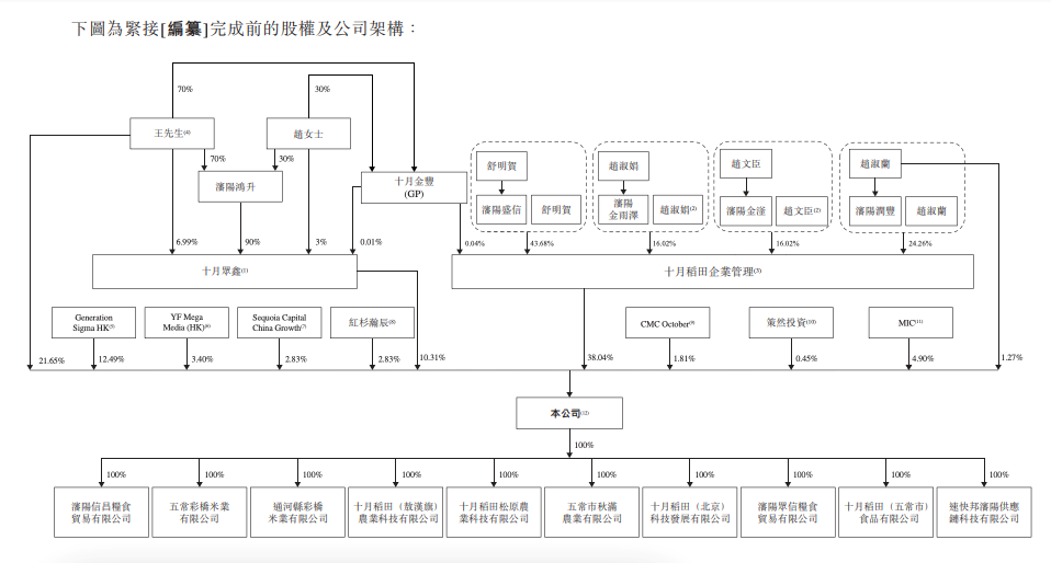 根据招股书,IPO前,红杉中国、PJSC、云锋基金、CMC资本以及策然投资分别持有十月稻田5.66%、4.90%、3.40%、1.81%以及0.45%的股份。
