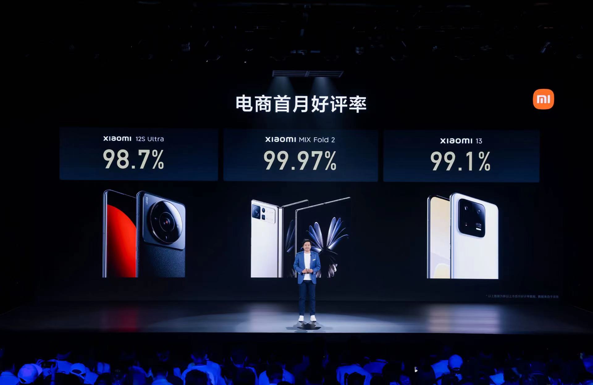 “经过三年努力,我们高端化战略取得了阶段性成果。”雷军在发布会上表示,去年小米发布了三波高端旗舰,小米12S Ultra、小米MIX Fold2以及小米13系列在电商平台的用户好评率均超过98%,“我们有信心、也有能力,做出米粉朋友们满意的高端手机”。