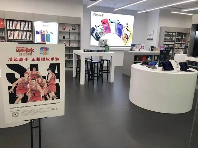 4月22日,在社友们观看电影附近的三里屯 Apple Store 零售店里,我们还看到了有众多玩家和观众一起参与了一场线下的游戏表演赛,据了解,其中还不乏《灌篮高手 正版授权手游》里的明星玩家。