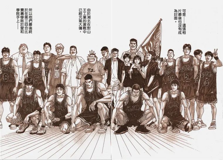 时间来到1996年的盛夏,湘北在第二回合中战胜连冠王山王,全国大赛刚刚拉开帷幕,井上雄彦用一句话便带过了后续比赛:“湘北元气大伤,在第三回合中惨败给爱和学院。”这一幕成了无数人青春的遗憾。