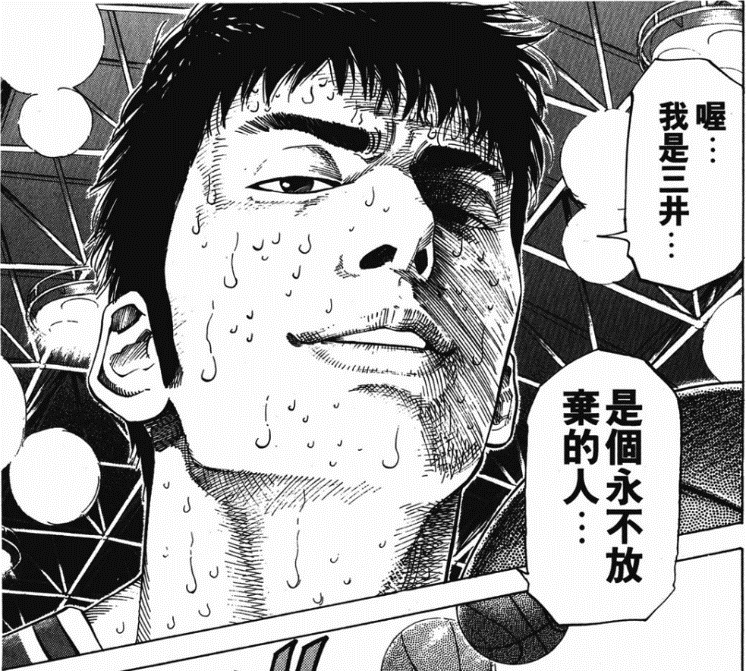 三井因伤离开球队,走上歧途,又因为热爱回归。上演了浪子回头的戏码,名台词被传唱至今。
