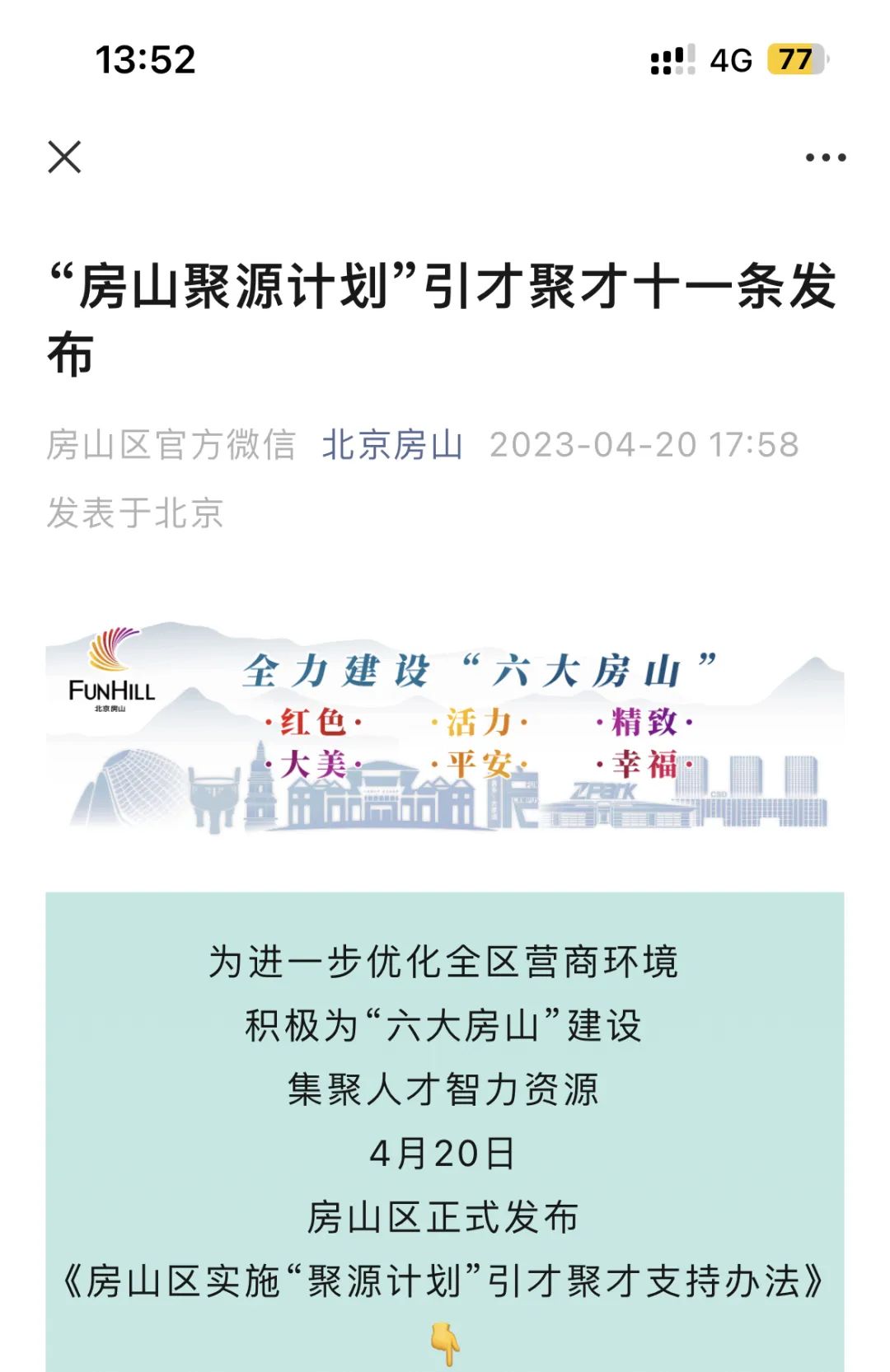 也就是说,只要你被纳入了房山区的“聚源计划”人才,就可以享受资金奖励、购房租房补贴,尤其是能够优先享受办理北京户口。