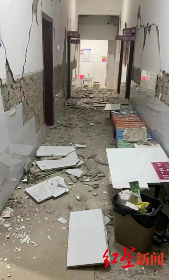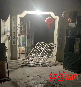 定位在云南省保山市瓦窑镇卫生院的云南市民向红星新闻记者介绍,所在卫生院部分瓷砖在此次地震中震落,目前人员已撤离,受灾情况还在统计。另一张现场图片显示,保山市第二人民医院瓦窑分院大门铁门一半被震落,其中医院有墙体开裂。