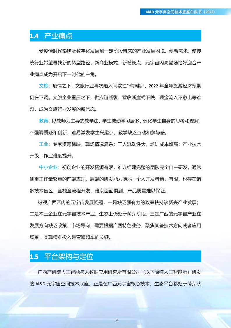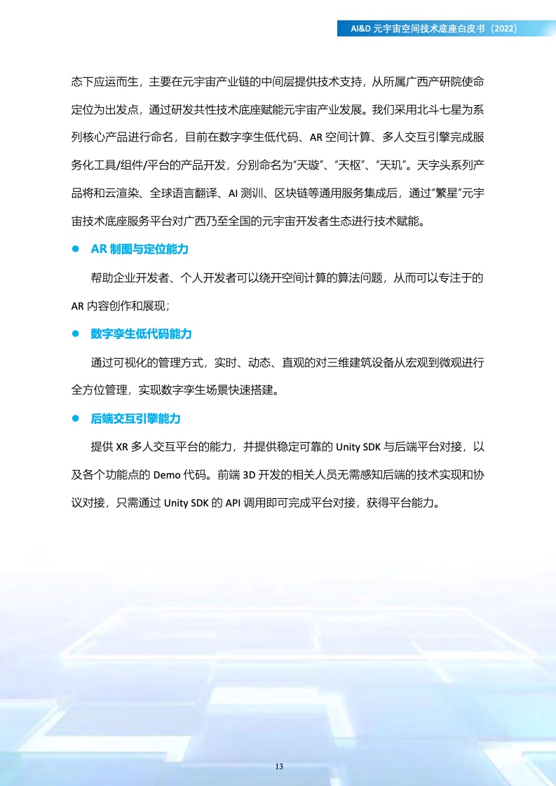白皮书全面分析元宇宙最新发展态势,系统性介绍自研产品架构、定位、核心能力,并列举了元宇宙产业的典型场景应用案例。最后,展望了元宇宙繁星计划,希望推动数字创新生态打造,助力广西打造元宇宙产业应用高地和创新标杆。