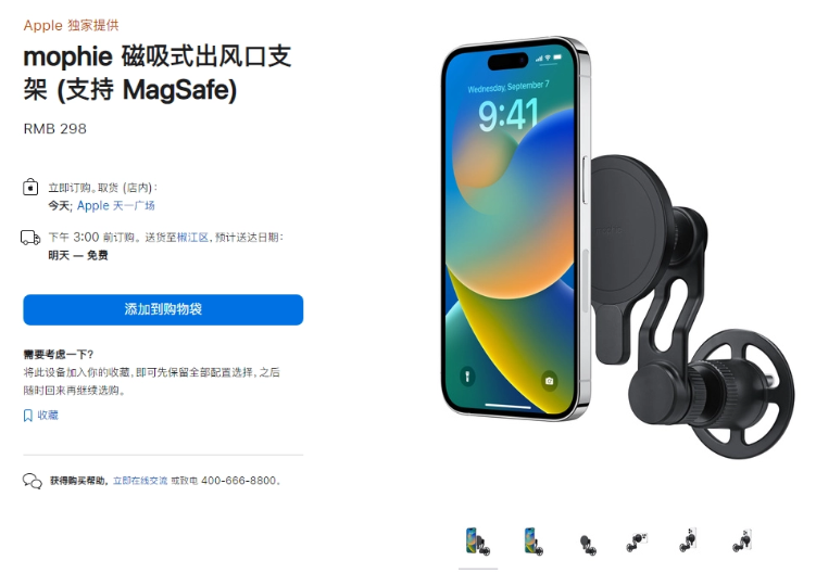 原标题:售价 298/798 元,苹果官网上架支持 MagSafe 的 Mophie 出风口充电支架