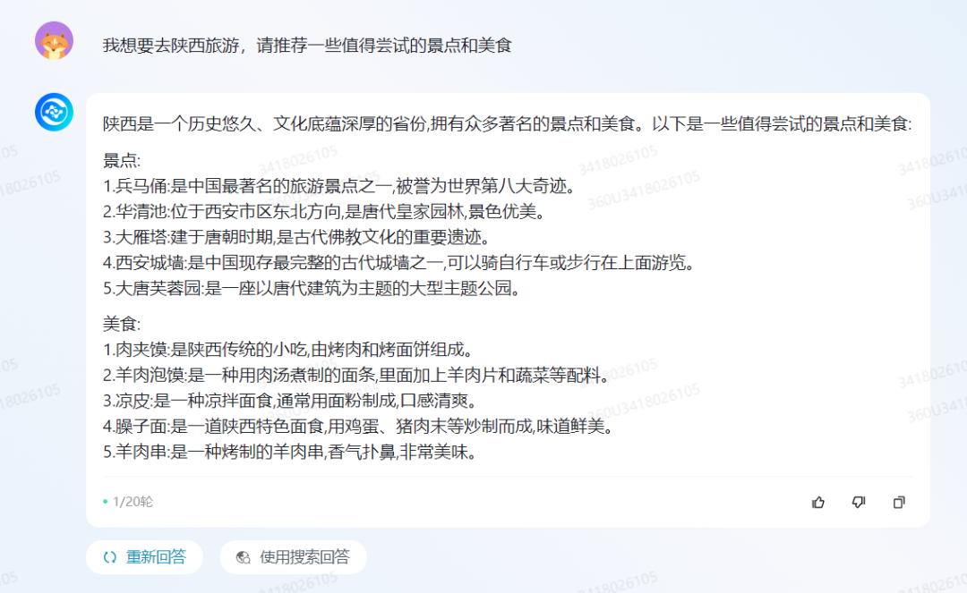 聊天界面的最大优势,在于能让大部分用户通过更直观的对话状态与 AI 系统进行交互与交流,这种模拟真实人类对话的形式无论是在 PC 端还是移动端都具有亲和力。并且,「360 智脑」为用户提供了「喜欢」或「不喜欢」的按钮,当你对 AI 给出的回答满意或者不满意时,通过点击都能进行反馈并帮助提高语言模型的性能。不过不同之处在于,「360 智脑」在回答时还能启用搜索功能,相当于已经加入了一个实时搜索的功能插件,以便实现更好的回答效果。