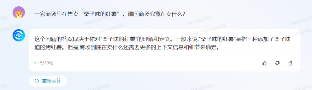 显然,这个对曾让 ChatGPT「头疼」的问题,「360 智脑」却不在话下。这时候我又尝试了一个经典的问题考验「360 智脑」,看看它能否反应过来。