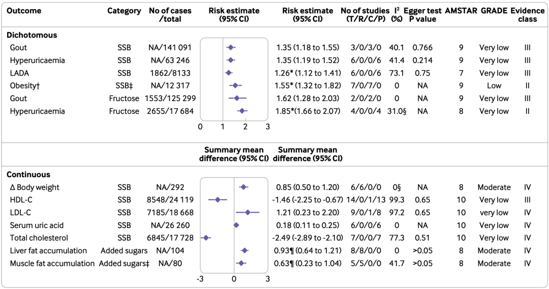 咱们先来看吃糖与哪些内分泌/代谢结局之间有害关联。