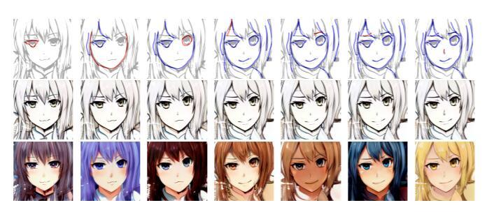 AniFaceDrawing 可以将草图转化成为动漫风格的图画。该模型基于StyleGAN的双阶段训练策略来解决从不完整草图生成高质量动漫肖像画的问题。这种训练策略不需要计算 GAN 输入和输出之间的损失,可用于处理语义布局或线绘画作为输入。