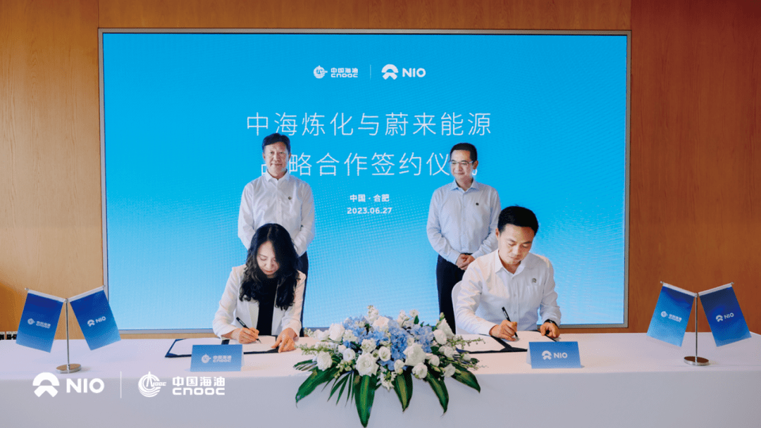 6 月 27 日,蔚来能源与中海炼化达成战略合作,双方在江淮蔚来合肥制造基地正式签署战略合作协议,将携手共建充换电基础设施,为用户“带来更便捷的加电体验”。