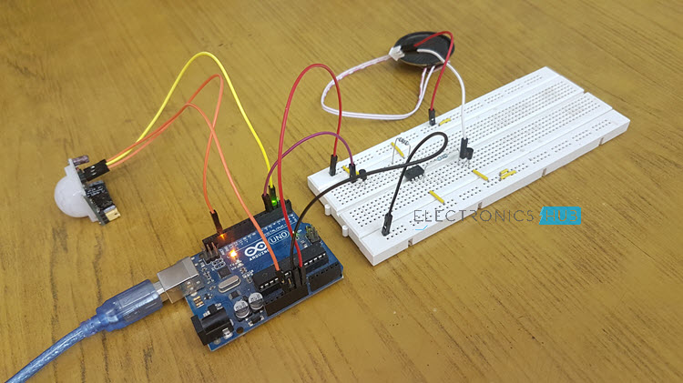 电路的主要思想是提供安全。该电路基于 PIR 传感器和可发出警报声的集成电路。PIR 传感器检测人体发出的红外辐射,并产生数字输出。该数字输出被应用到 Arduino UNO。