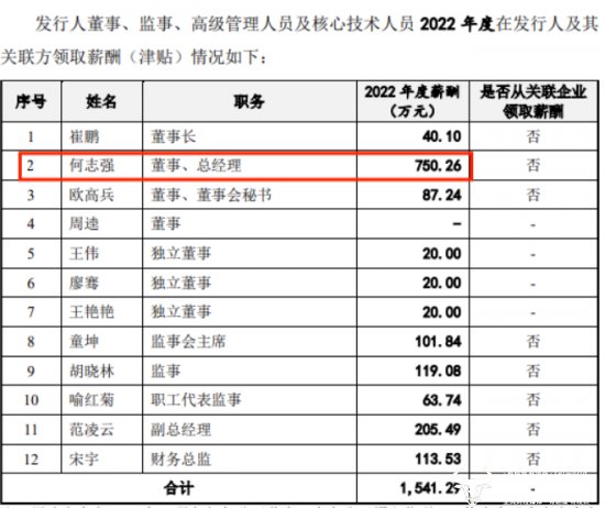值得一提的是,菲鹏生物招股书显示,2022年,时任公司董事、总经理的何志强获得的薪酬为750.26万元,而去年菲鹏生物董事、监事、高级管理人员、核心技术人员的薪酬总计为1541.29万元,何志强的薪酬约占高管总薪酬的一半,可以说是非常高了,其他那么多高管的薪酬加起来与他接近。