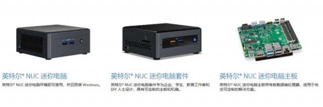 英特尔®NUC迷你电脑套件:在主板的基础上配了外壳、散热器等部件。可以自己选购内存条和硬盘。