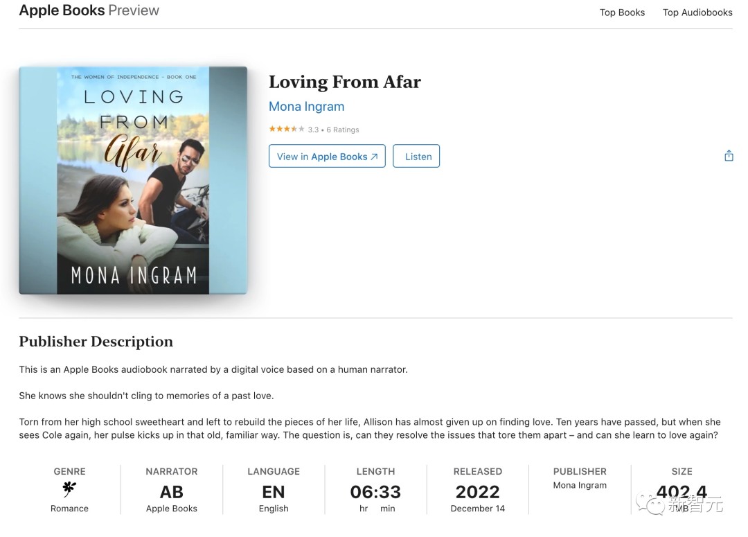 除了测试语言生成AI,在今年1月,苹果曾启动了一项计划,在Apple Books上提供数字旁白的功能,可以从书面文本中自动生成高质量的人工智能旁白音频。