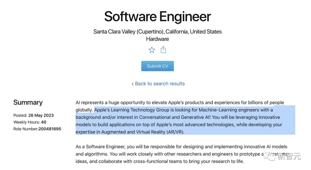 不仅如此,苹果正在雇佣更多生成人工智能专家。