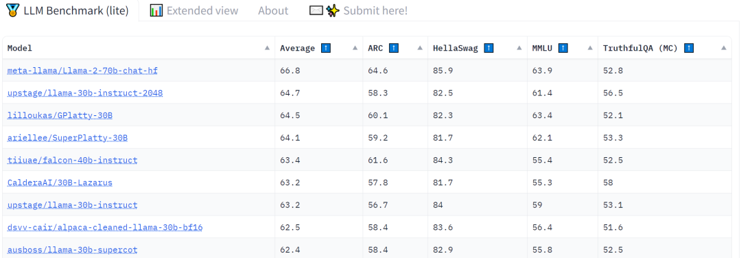 发布之初, Llama -2-70B-Chat 迅速登顶 Hugging Face 的 Open LLM Leaderboard。