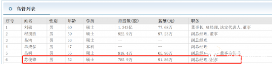 不得不说,达实智能高管的学历都还挺高的,还都是名校,比如清华大学、南开大学、中南工业大学等,其中15位高管中有博士两名,硕士9名,本科2名,还有一个是大学学历,因此在20世纪90年代初,苏俊锋的硕士学历在达实智能也不算太出挑的。